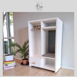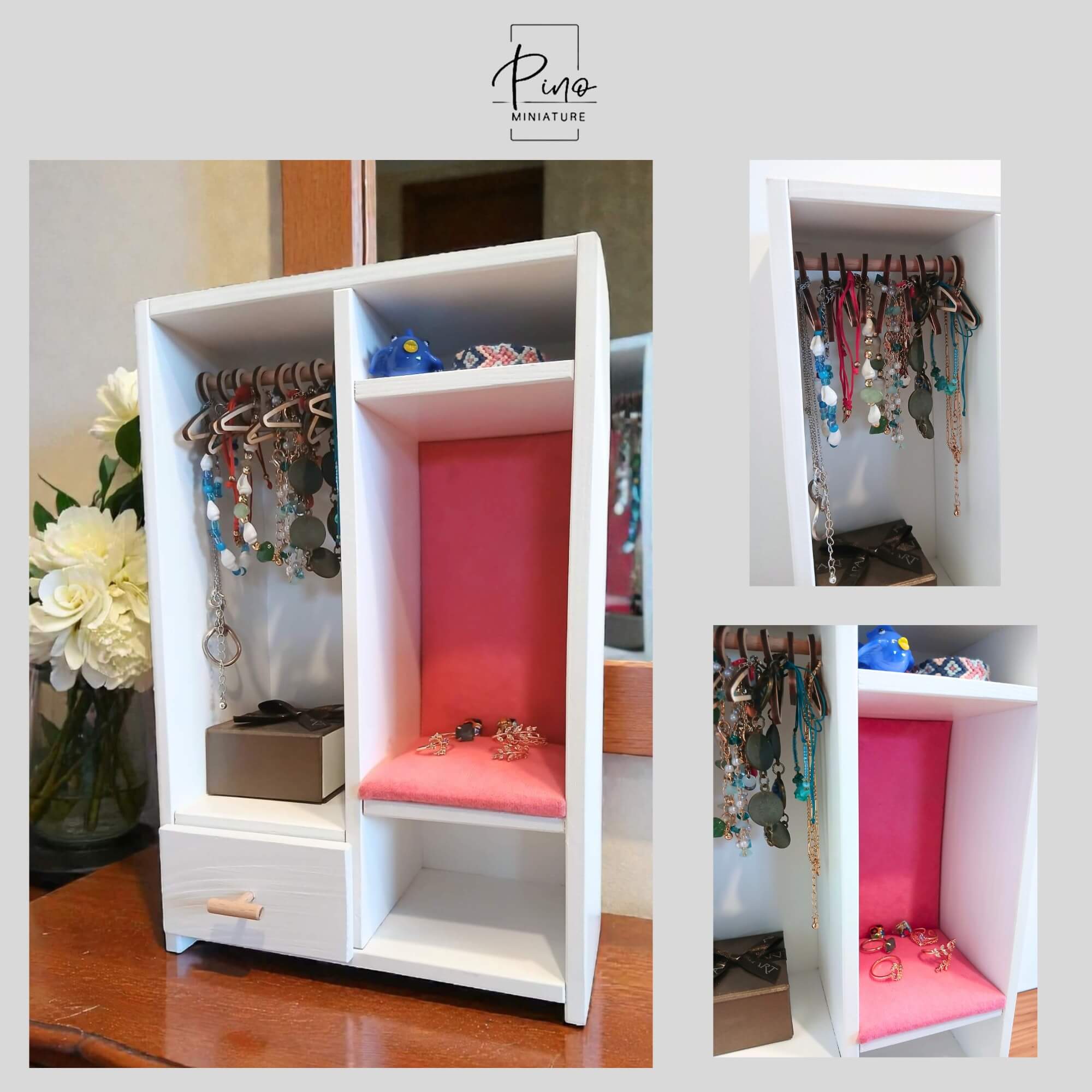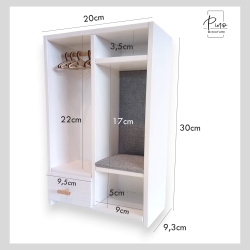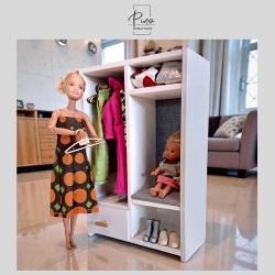Garderoba jest w formie otwartej szafy z półkami na buty i czapki dla lalek. Posiada też szufladę i 5 firmowym wieszaczków drewnianych . Więcej informacji znajdziesz poniżej w opisie. TUTAJ zobacz jako mebelek na biżuterię