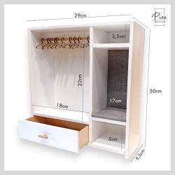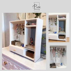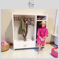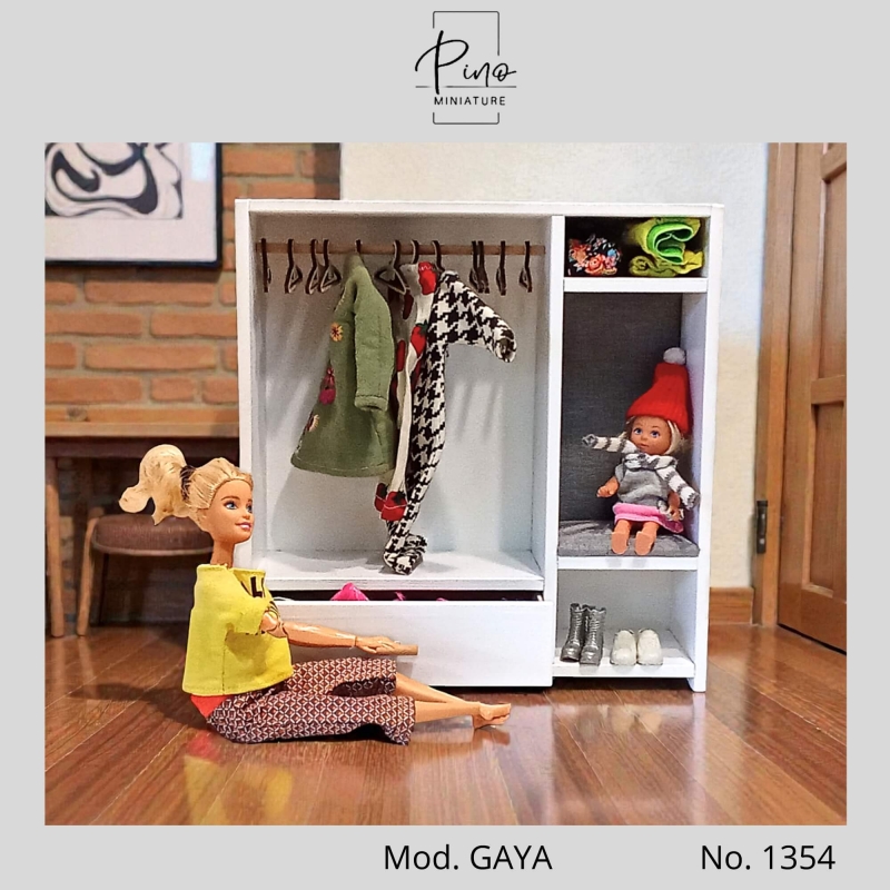 Gaya jest największą garderobą w formie otwartej szafy. Przeznaczenie dla niej znajdziesz w swojej wyobraźni. Przygotowana przez nas głównie z myślą o lalkach i taką właśnie aranżację wam przedstawiają zdjęcia z naszymi lalkami. Może stanowić wyposażenie twojej łazienki: powiesisz na wieszaczkach biżuterię, postawisz perfumy, przyozdobi parapet , czy biurko Mebelek z racji swojej okazałości może stanowić piękny prezent dla twojej córki ale i dla mamy , babci , cioci , koleżanki czy siostry. Z okazji i bez okazji. Zobacz TUTAJ GAYA z biżuterią