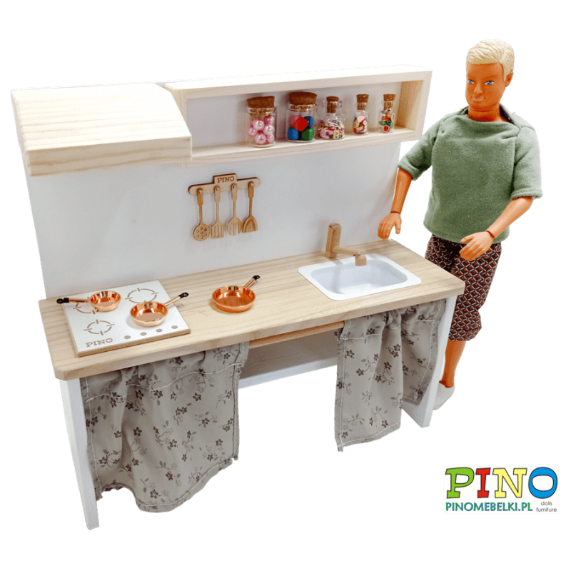 Aneks kuchenny - Kuchnia drewniana dla lalek Barbie