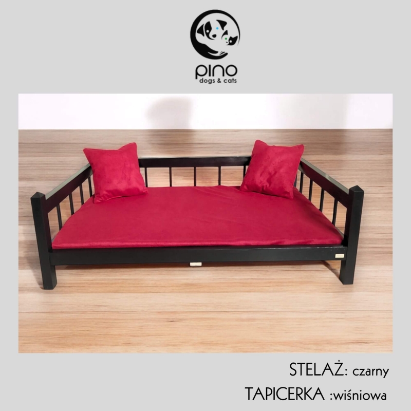 Łóżko drewniane szare M ze zdejmowanym pokrowcem Wiśniowy + poduszki 6221