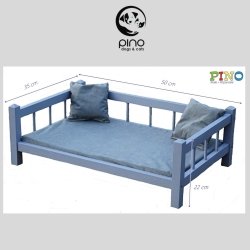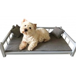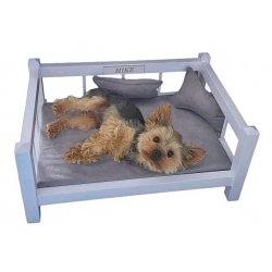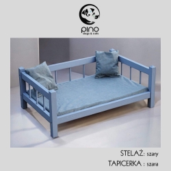 Łóżko drewniane S Legowisko dla psa kota z szarą tapicerką 6220