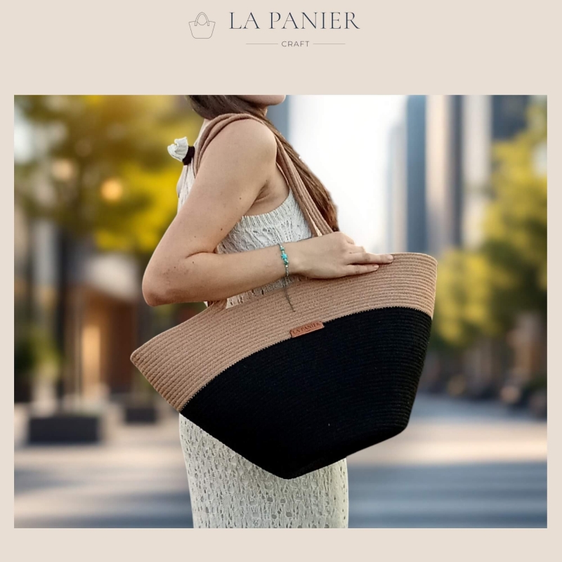 Ten duży koszyk idealnie sprawdzi się na lato, wiosnę czy upiększy twoją jesienną garderobę. Klasyczne połączenie czerni i beżu sprawdzi się w każdej sytuacji.