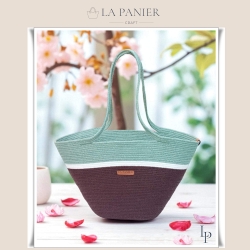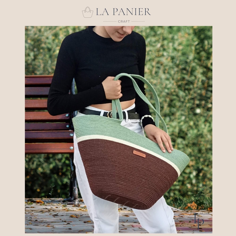 Koszyk trzykolorowy - miejski shopper szyty ze sznurka bawełnianego.
